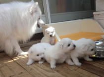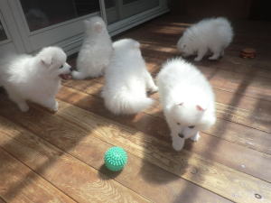 | 7/16 生後46日、御予約頂いたご家族様のもとへ行く日程が近づいてきました。 その日まで、お預かりしているこいぬたちの世話を確りと担ってまいります。 |