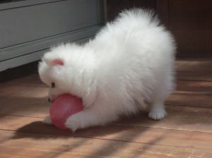 8月10日生後37日目 随分、モコモコしてきたね。 だんだん、スピッツになってきたよ♪ |