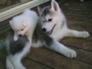 ハスキーのメイちゃんとも、初めて遊んだよ。メイちゃん(生後3ヶ月)は大きいなぁ~ でも、とっても優しいお姉さん。 背中に乗ってもニコニコしてた♪ 明日も、イッパイ遊ぼうね! |
